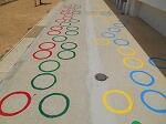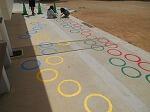 先週、本校の先生がけんけんパー遊びのコースを用意してくれました。今週児童の皆さんと仕上げの色塗りをしていく予定です。子どものころはこの輪に片足跳びをしながらよく遊んだ保護者の皆様も多いと思います。遊びを通して体を鍛え、心身共に健康な神原っ子に育っていってほしいですね。完成までの様子を随時お知らせします。