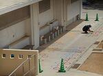 〇4月21日午後2時頃の様子です。今週は4時間授業です。本日も午後に児童の皆さんが頑張って2コースを描いてくれました。企画から最後までの色塗り、体育専科の先生、ありがとうございました。