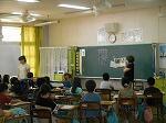 毎朝、児童会の皆さんが朝のあいさつを児童玄関前で行います。また1年生の皆さんはアサガオのの苗に水やりをしてお世話をしています。教材園では2年生の皆さんがオクラやきゅうり、なす、ピーマン、ゴーヤーを育てています。