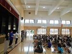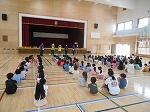 本日午前8時20分より体育館において、1年生を迎える会が行われました。密を避けるため、1年生の皆さんはひな壇で見学し、各学年ごとに体育館に入場しての発表となりました。