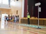 本日3校時目に本校1年生児童の皆さんと神原子ども園の園児の皆さんを対象に交通安全指導が行われました。講師として沖縄県警察の方や那覇地区交通安全協会の方々が来校され、人形との会話形式で交通ルールについてお話しされたり、移動式の簡易信号と横断歩道を使って園児・児童の皆さんが渡る練習も行いました。児童・園児の皆さん、交通ルールを守ってしっかりと登下校したり、日頃の生活を安全に過ごしてくださいね。また、本日講師となってくださった皆様、貴重な体験をありがとうございました。