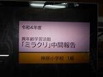 本日、8時20分より各教室においてミラクリ朝会が行われ、先日ご紹介した異学年学習活動・ミラクリプロジェクトの中間報告がオンデマンド放送されました。1組の10チーム、2組の10チームがチームの名前の紹介や名前をつけた理由、なわとび検定の予定日をナレーション形式で紹介しました。また各チームの練習風景も紹介されていました。