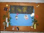 本校には校内掲示板の他に、いろいろなお知らせを掲示するお部屋が児童玄関先にあります。先月は青年海外協力隊に参加経験のある先生が派遣先のラオスという国やそこに住む人々の生活、子ども達の様子等を紹介していました。