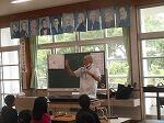 本日2校時と3校時目に、音楽室において講師の先生をお招きして3年生のリコーダー講習会が行われました。3年生の児童の皆さん、持ち方や指使い、タンギングやリコーダーの種類や歴史、また横笛との音色の違いなど、入里講師のユーモアたっぷりの講習で楽しく教わっていました。