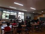 講話内容は、いじめ、万引き、喫煙、飲酒、サイバー犯罪(SNSトラブル)についてです。先生から一つ一つスライドの紹介を受けながら説明を受けたり、また自分から挙手をして発表したりする等、、児童の皆さん真剣に聞き入っていました。那覇警察署の皆さん、本日はありがとうございました。写真は2校時目の様子です。