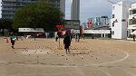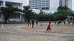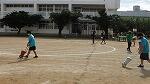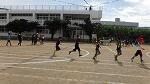 低学年(1・2年)中学年(3・4年)高学年(5・6年)毎に走るコースを分けました。運動場にには昨晩の雨で水たまりもありましたが、6年生の皆さんがきれいに水抜きや砂入れ、コース作りをしてくれました。ありがとうございました。