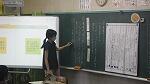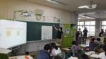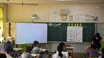 本日5校時目に3年生の学級において国語の研究授業が行われました。単元名は「すがたをかえる大豆」です。授業は、筆者が本文の書き方で工夫している所を各自でさがし、お隣と相談して意見をまとめ、タブレット(クロームブック)のジャムボード機能を使って学級内で考えを共有する内容です。