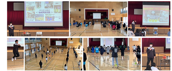 講話では、実業団時代に主将に指名され、自分にできるはずはないと逃げている時にコーチから「立場が人を変える」ということばに背中を押され、主将を引き受け、務めていく中でチームを見る見方や考え方が広がり、人として成長できたこと。試合中に接触による大けが(頭を打ち意識を失い、複数骨折で救急搬送)をし、引退を考えたときに仲間やファンなど周りの方からの温かい励ましがあり、続ける決意をし、チーム初の日本一に輝いたことなど、これまでの経験から学んだことを教えてくれました。そして最後には「常に感謝の気持ちを大切にしてほしい」親、先生、友人など周りの人、そして体育館や机やユニフォームなどのモノ、とにかくあらゆることに感謝の念を持ち歩んでほしいと熱いエールで締めくくりました。