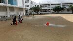 6年生はその後に、運動場の端で訓練用の消化器を使い、初期消火の実演を行いました。