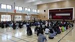 本日8時20分より体育館において、那覇市共同募金委員会(那覇市社会福祉協議会)の皆様をお招きして赤い羽根共同募金・学童募金 贈呈式が行なわれました。