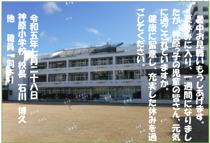 神原っ子の児童の皆さん、暑中お見舞いもうしあげます。
