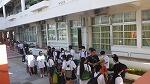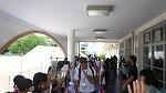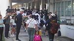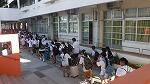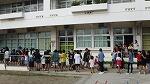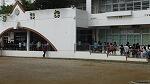 そして8時前。体育館玄関を出て、学校に残る他学年児童の「行ってらっしゃい!」の声を受けながら1泊2日の旅に、にこにこの笑顔で出発して行きました。今年の修学旅行では、美ら海水族館等の施設見学やマリンスポーツ体験(シーカヤック・ドラゴンボート・グラスボート)の他、愛楽園にてハンセン病について学習する機会もあります。