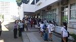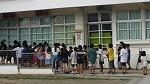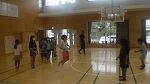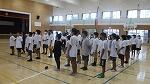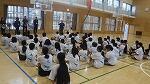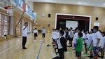 本日の那覇市は、よく晴れて気持ちよいお天気です。6年生児童の皆さんは早朝から学年Tシャツにそろえて登校し、体育館で修学旅行の出発式を行いました。一緒に引率する先生方の紹介や心構えを確認し、機敏に行動できるように場所移動をしての整列の練習もしていました。