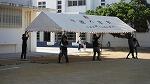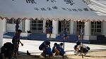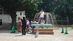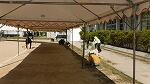 本日6校時目は6年生児童の皆さんがテントの設置作業を職員と行いました。5~6人チームで1梁のテント屋根部分を広げて骨組みに合わせ、ひもを結んで固定する作業までを手伝ってくれました。またその後は、運動場リレーコース上の小石拾いをして他の児童の皆さんがけがをしないよう、最上級生として丁寧に頑張りました。