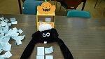 図書館では、本日と明日の2日間本を4冊借りた児童の皆さんへ手作りのハロウィンくじを実施しています。くじには本をプラスで借りられる券(1~3冊)としおりプレゼント券の2種類が用意され、本を4冊借りた人が、カウンターで「ハッピーハロウィン」と言うとくじ引きができます。図書委員会の児童の皆さんのアイデアで生まれた企画です。放送でも周知していますがぜひ、児童の皆さん利用してみてください。