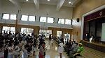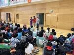 集会は第1部が体育館で、第2部が各学年フロア・学級で行われ、第1部では、ご出席いただいた皆様のご紹介の後、児童会の指揮の下、全校児童で「ありがとうの花」を歌いました。校長先生からは「ありがとう」という言葉が「あって当然」という言葉の反対の「有り難い」という言葉から来ていることや、日頃からお世話になっている周りの方々(保護者の皆様・地域の皆様・児童と関わりのある方々)に感謝の気持ちを表しましょうということがお話されていました。