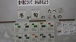 本校児童玄関奥の階段下には、『食べ物についてかんがえよう「冬が旬のたべもの」』の写真が掲示されています。キャベツや大根、京菜(水菜)、レンコン、カリフラワー、ほうれん草、りんご、たらばがに、さわら、ぶり、等々の食べ物です。なべやおさしみ、ゆでたり、煮付けたり、デザート等々、美味しい食べ物ですね。