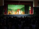 本日3・4校時に体育館において劇団ポプラの皆さんをお招きして芸術鑑賞会が行われました。テーマは「オズの魔法使い」です。主人公のドロシーがかかしやブリキ男、ライオンなど仲間たちと一緒に冒険する様子が映像効果も交えて迫力ある様子が上演されました。児童の皆さん、物語の中の場面場面に集中していました。