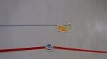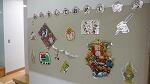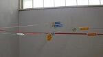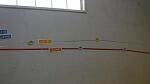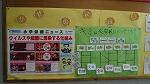 本日、追加の掲示がされました。おしゃべりや、せき、くしゃみで等でウィルスが飛散する距離をビニールひもを使って立体的に表示しています。