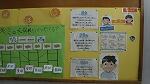 本日より始まりました給食週間、1号校舎階段下には、冬瓜やにがうり、キャベツ、ヘチマ、からし菜、田芋、よもぎ、えんさい他多くの沖縄野菜の写真から、「ウチナーぐち」でどれだけ野菜の名前を知っているかクイズが掲載され、また「給食の歴史(移り変わり・沖縄県バージョン)」として昭和35年~現在までの給食を写真で載せながら「時代は変わっても、どの時代も子どもたちの健康を一番に考えて作られた給食」であることが説明されています。