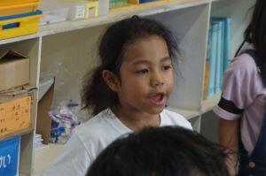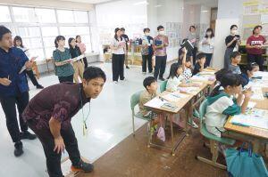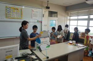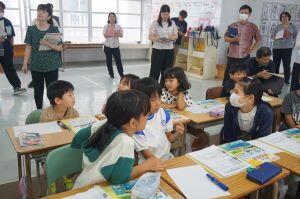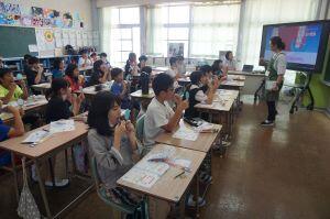 5年生の教室を除くと、南海子先生が歯磨き指導をしていました。