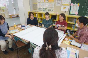 授業後は、みんなで授業研究です。たくさんの意見が出ます。