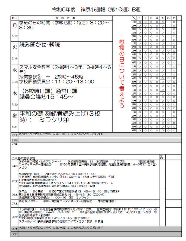 6月24日の週予定