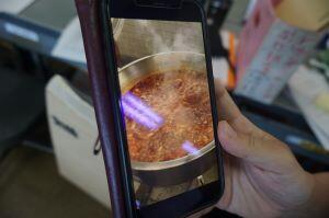 図書館の先生に送られてきた、給食センターの鍋の様子を見せてもらいました。