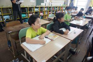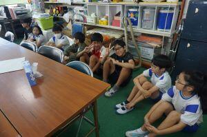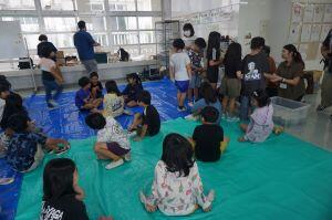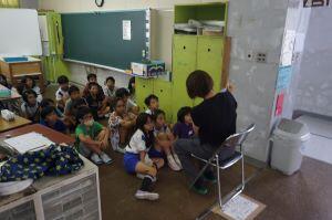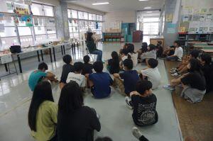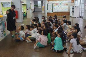 子どもたちは、ブルーシードの上でしっかり聞いています。