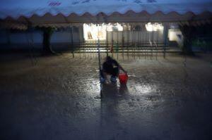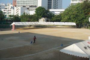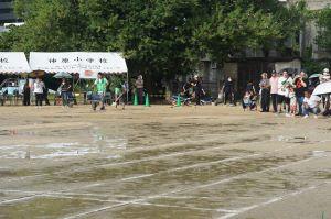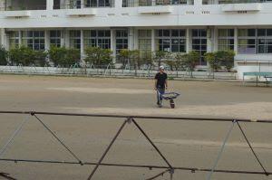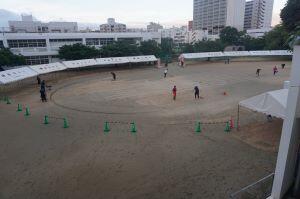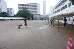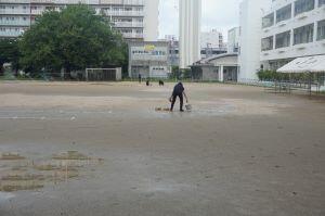 一生懸命砂をまいて整備している先生方がいたんです・・