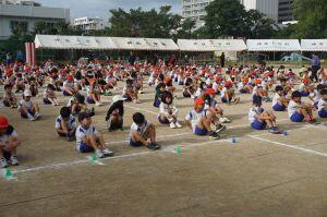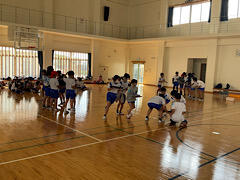 各学級、作戦を立てて、5色綱引きです。手に汗握る名勝負展開されています。