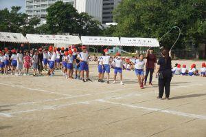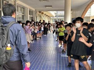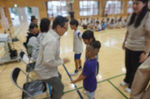 5年生の子は、前に出て、頑張ってくださいって応援・・・