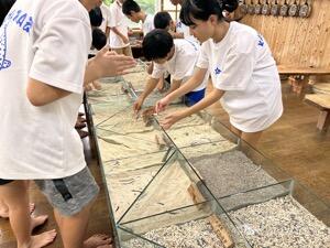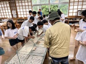 鍋、食器、かまどの灰や薪。先生方のチェックをしてもらいながら、一つ一つ丁寧に作業を進めています。