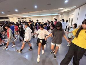 あちらこちらでは、煙いとの声があがったり、運動会の応援歌で踊っている集団も。