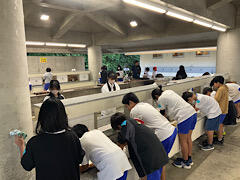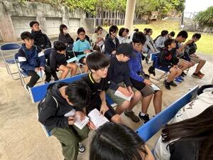 まずは水分補給。時間に余裕がある皆さんは、振り返りを記入したり。元気に遊んだり。