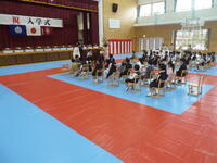 新任式を終えて、始業式を待つ神原っ子の整然とした姿が素晴らしい。