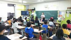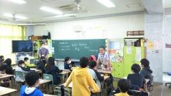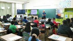 児童は目を輝かせ聞き入っていました。観光クイズも行われ、正解者には、手作りのかばんがプレゼントされました。
