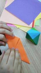 ③折り紙クラブは作り方と電子黒板に拡大し見ながら作り上げていました。