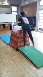 ⑩外スポーツクラブは、雨のため室内で「人間じゃんけん」や「跳び箱運動」をしていました。