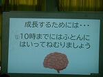 本日8時20分よりオンラインにて2学期後半開始のお話朝会が行われました。教頭先生からは、「早寝・早起き・朝ご飯が児童の皆さんの成長にとって、とても大切なことなのでぜひ、実践を続けてください。」と図やイラストを交えながらお話をされていました。早寝・早起き・朝ご飯、とてもたいせつですね。