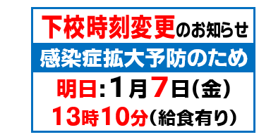 ・新型コロナの急拡大を受け、特別日課で対応します。