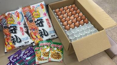 卵1箱、お米10㎏、ふりかけ6袋