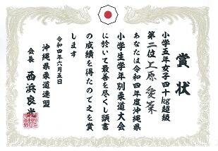 昨日、県立武道館で行われた令和4年度沖縄県小学生学年別柔道大会において、小学4年生の上原愛菜さんが、40㎏超級で見事準優勝しました。