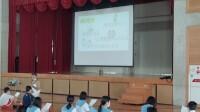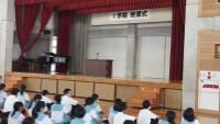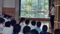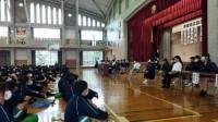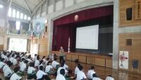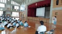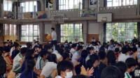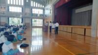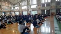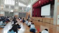 「集団指導」は生徒指導主事の喜納先生がパワーポイントを使って丁寧に説明をされました。はじめに、本校の共通実践事項「みそあじ(身なり・掃除・あいさつ・時間)」の徹底について詳しく説明がありました。