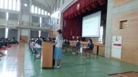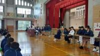 質疑応答は事前に全学級が「学級会」で話し合い、質問事項や提案事項を生徒会執行部に提出してくれています。生徒会長から「まず、3年生が見本になってください!」の声かけがかかると、3学級(3-3→3-2→1-1)が積極的に全員挙手して発表への意思表示を行い、活発な討議となりました。
