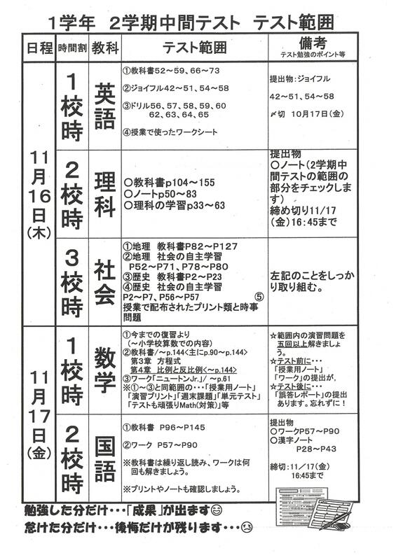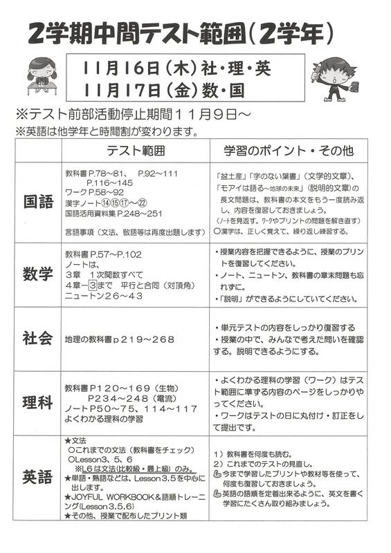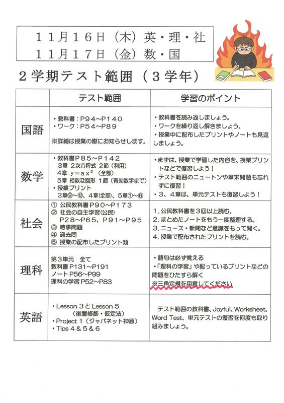 3学年の総合テストと、12月に予定されていた全学年の三者面談の日程が変更になりました。詳細は、11月1日付の公文、または、下記よりご確認ください。