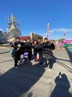熊本城では、紅葉も見られ、自主研修では美味しい食事やスイーツを