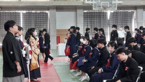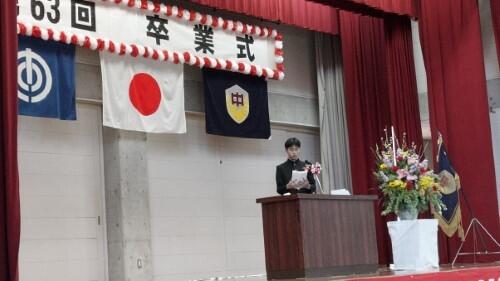 新入生代表の田川結己さんのあいさつでは、「先輩方のプレゼンテーションで生徒会の仕組みがよく分かったことや部活動を3年間続けたい!」という強い決意が表れた素敵なあいさつでした。