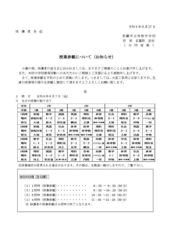 なお、生徒には文書を2種類配布しておりますので各家庭でもご確認ください。