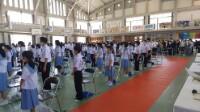 4月11日(月)5校時、体育館にて、新入生「生徒会入会式・部活動紹介」を実施しました。ねらいは以下の3点です。「①新入生に生徒会組織を知ってもらい、一人ひとりが生徒会の一員であるという自覚を持たせること」「②部活動の様子を知ることで、部活動参加への意欲を喚起すること」「③生徒会活動の良さを学ぶ機会とすること」